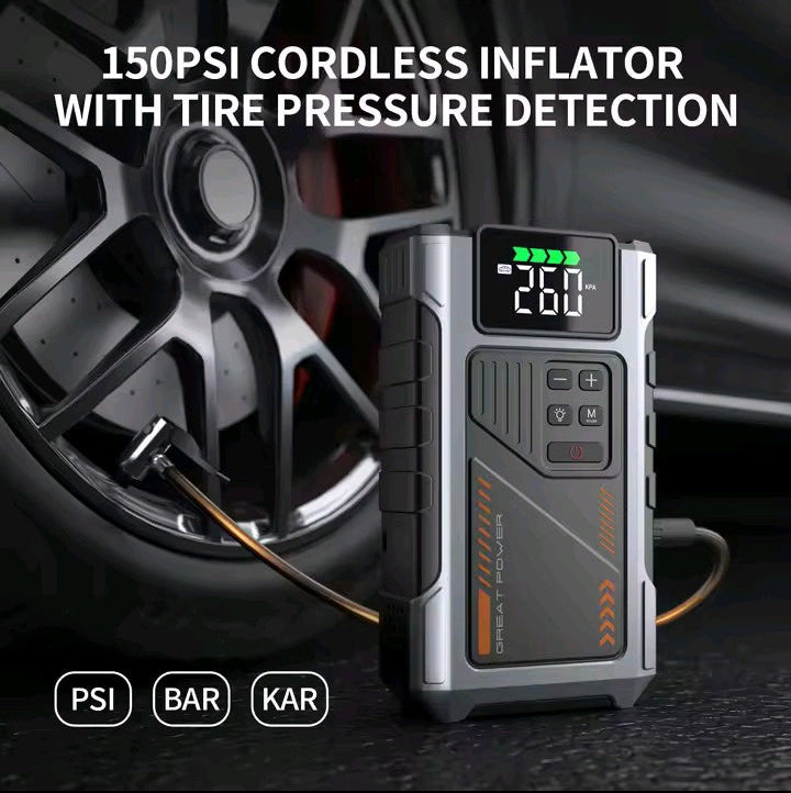 Start je auto, motor of SUV binnen enkele seconden! De GREAT POWER 4-in-1 Jumpstarter is je ultieme noodhulp onderweg. Met luchtcompressor, LED-noodlicht en USB-powerbank β compact, krachtig en betrouwbaar.